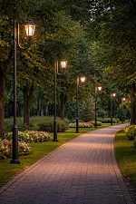 Парковые осветительные комплексы используются для декоративного и функционального освещения парков, скверов, аллей и рекреационных зон. Такие системы сочетают эффективность освещения с эстетической привлекательностью.